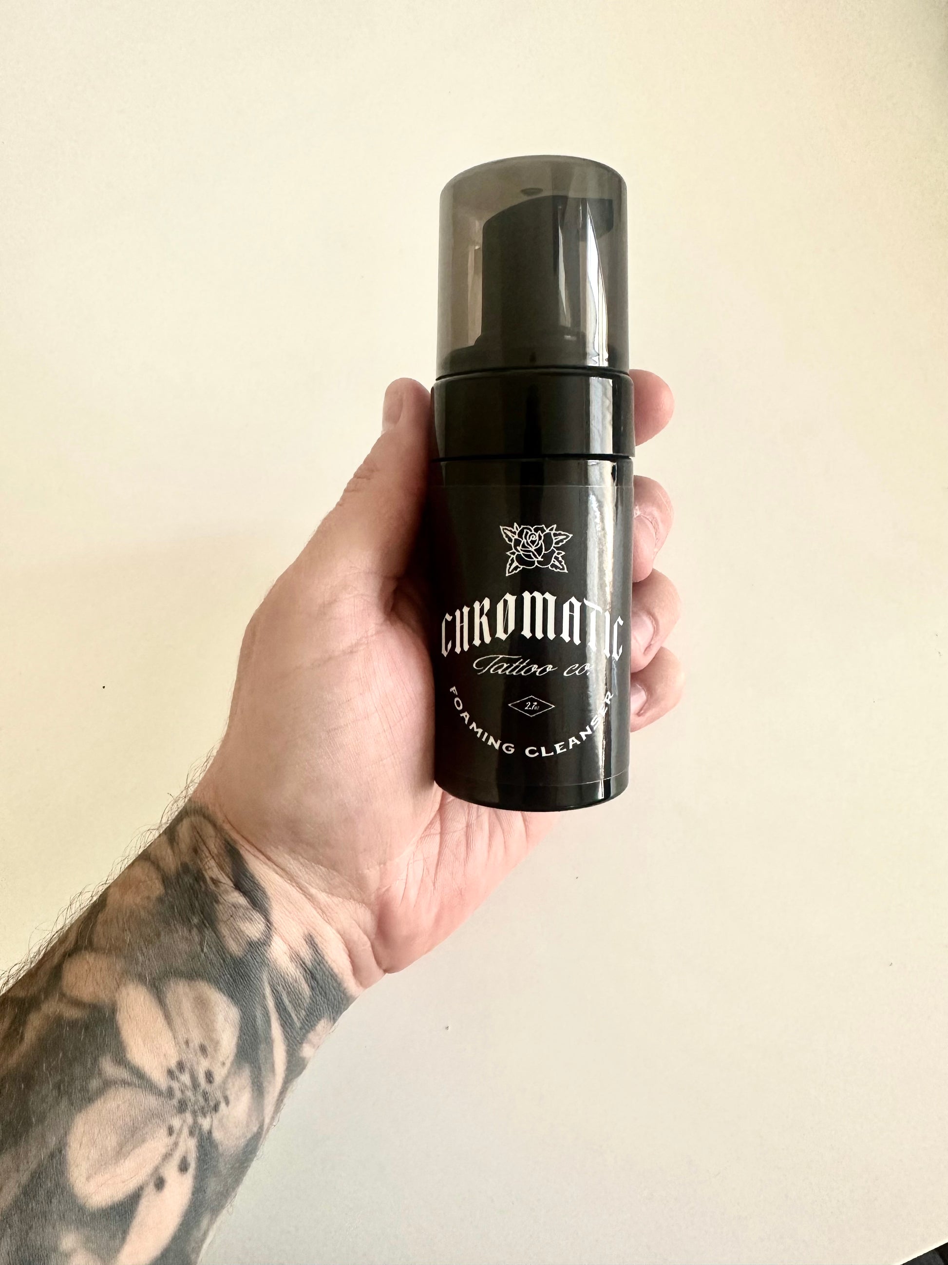 Keep your fresh ink clean and protected with our gentle, all-natural foaming cleanser. Designed specifically for healing tattoos, this formula removes dirt and bacteria without stripping or drying your skin.